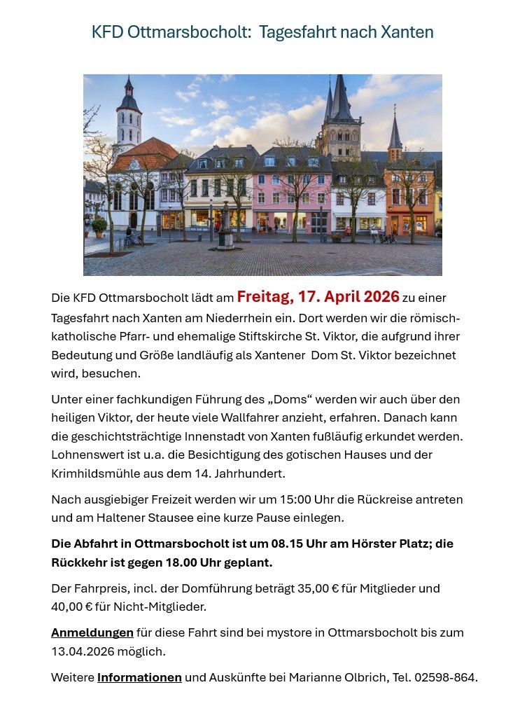 Wir freuen uns, Sie auf der Homepage von Ottmarsbocholt begrüßen zu dürfen. Neben Informationen rund um das Dorfgeschehen finden sich hier Links zu Ottmarsbocholter Vereinen, Einrichtungen, Geschäften und Betrieben. Darüber hinaus wurden in den Portrait-Rubriken Informationen zusammengestellt, die einen Eindruck von Ottmarsbocholt und den hier wohnenden Menschen von früher bis heute vermitteln sollen.